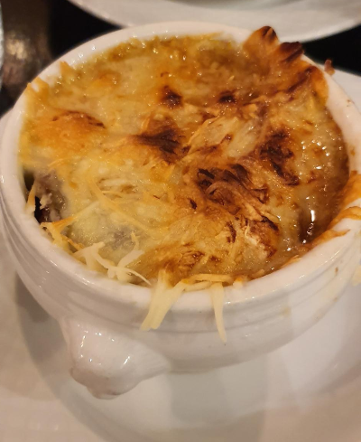 여러분, 프랑스 파리에는 양파수프가 그렇게나 맛있답니다!! 꼭꼭 드셔 보시길 강추 두 번 세 번 드립니다. 밖이 추워서 그런지 더 맛이 있었고 한식 파인 제 와이프도 양파수프는 너무 맛있다고 몇 번이고 말할 정도니 믿고 시키셔도 되십니다. 참고로 옆 테이블은 메인 요리 없이 양파수프 2개만 시켜서 점심 한 끼 드시더라고요! 양도 엄청 많습니다.