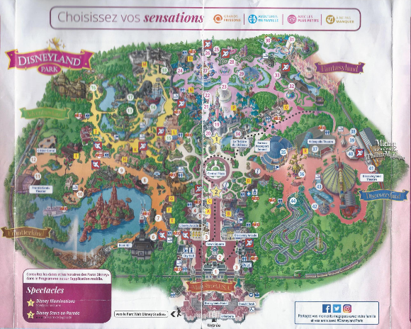 하나는 놀이기구(어트렉션)들이 많이 있는 파리 디즈니랜드입니다. 하나는 말 그대로 전시 및 관람이 많은 월트 디즈니 스튜디오입니다. 물론 놀이기구도 있지만 많이 무섭지 않습니다. ^^; 파리 디즈니랜드 지도를 자세히 보시면 각각의 테마별로 나눠져 있습니다. 이 테마들은 파리 디즈니랜드가 가지고 있는 '판권' 들에 의하여 테마별로 꾸며져 있는 건데요, 저희가 보통 알고 있는 알라딘 겨울왕국 이런 것들이 하나의 판권에 속하게 됩니다.