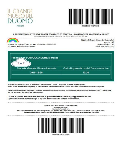 피렌체 두오모 통합권 구매하는 법은 여기서 마치도록 하겠습니다. 다음은 이렇게 예매한 피렌체 두오모 통합권으로 가 본 두오모 쿠폴라에 대해 포스팅 해보겠습니다. 감사합니다.