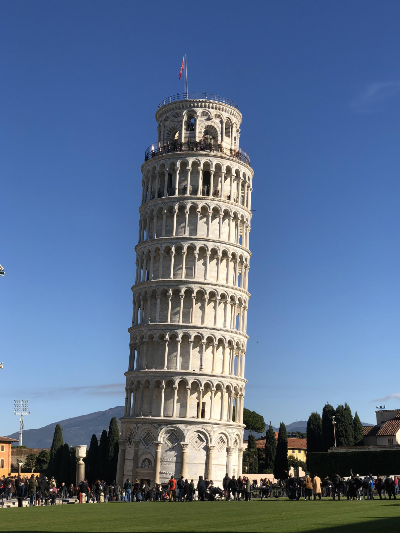 피사의 사탑은 여러분들도 잘 알다시피 이탈리아 대표 랜드마크 중 하나입니다. 위치는 이탈리아 피사라는 곳에 있고, 피사의 사탑의 층 수는 총 8층이며, 높이는 약 58m라고 합니다! 피사의 사탑은 200년 동안 공사를 했다고 해요. 그런데 땅과 흙이 불균형해지면서 기울어짐을 발견했고, 3차례에 걸쳐서 수정 공사를 진행했으나, 기우는 현상이 계속되었다고 합니다!