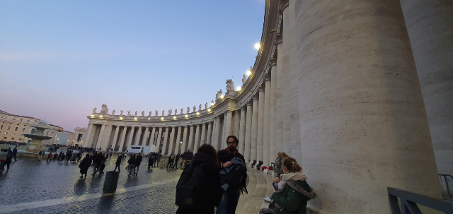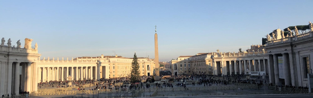 성 베드로 성당 앞에 만들어진 광장이며, 최대 30만 명이 들어올 수 있도록, 모든 사람들을 포용한다는 뜻의 원형으로 설계되었습니다. 성 베드로 광장의 좌우로 테라스를 '콜로네이드''콜로네이드'라고 부르게 됩니다. 기둥 위에는 총 140명의 가톨릭 성인상이 조각되어있습니다.