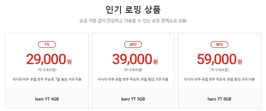 2. skt로밍의 요금제별 소개