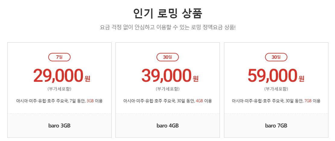 3. skt로밍의 요금제별 소개와 가입방법