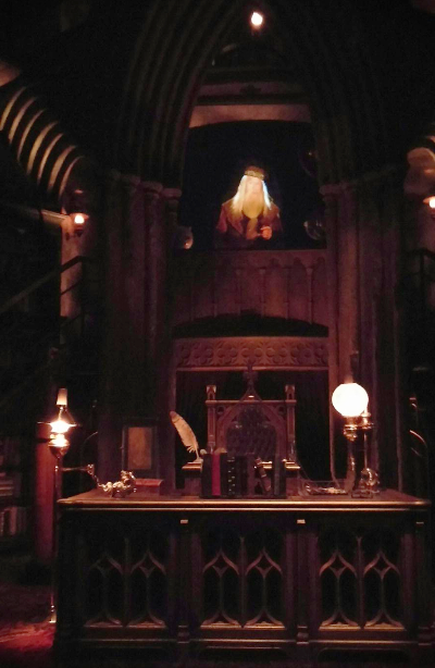마법사의 학교 호그와트의 교장선생님인 덤불도어 마법사의 집무실입니다. 흰머리를 길게 늘어뜨리고 안경을 쓰고 계신 게 특징이신 분입니다. 소설과 영화에도 중요 인물로 등장하며 항상 극적인 반전을 주는 캐릭터로 주인공인 해리포터에게 꼭 필요한 존재입니다. 그분의 집무실인데 영화에서도 똑같은 장면이 나와서 더욱 현실감이 들었습니다.