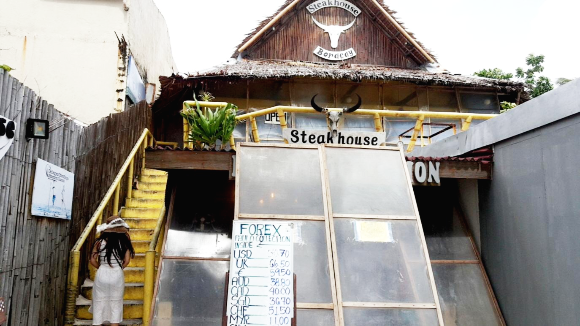 보라카이 D몰에서 딱 한 군데밖에 없는 스테이크 맛집입니다. 이곳은 맛집이기도 하지만 뷰 맛집이기도 합니다. 1층은 기념품과 수영 장비들을 판매하는 곳이고 스테이크 하우스 보라카이는 2층인데요, 2층에서 자리를 잡고 앉으면 화이트 비치와 드넓은 바다를 한눈에 바라보실 수 있게 뻥 뚫린 창문을 가지고 있습니다.